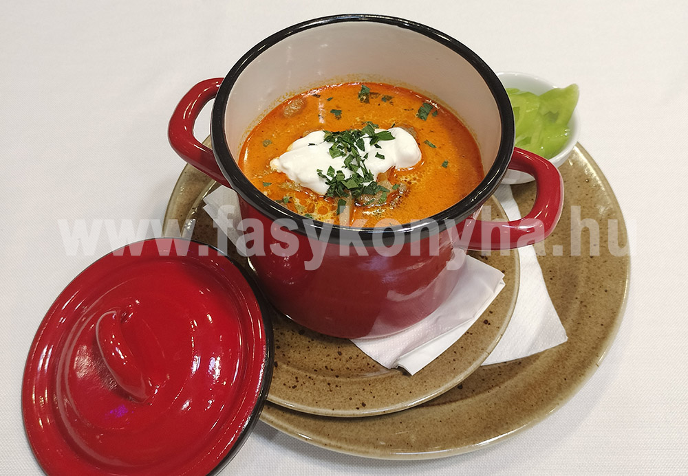 A megtisztított húst, a szalonnát, a burgonyát, a zöldségeket kockákra, a zöldbabot darabokra, a hagymát és a petrezselyemzöldjét finomra, vágjuk. Olajon a hagymát megdinszteljük, majd hozzáadjuk a húst és a szalonnát, zsírjára sütjük, megszórjuk őrölt pirospaprikával, kevés vízzel felöntjük, sóval ízesítjük, azután lassú tűzőn félpuhára főzzük. Azt követően hozzáadjuk a zöldségeket, a finomra vágott petrezselyem zöldjét, liszttel meghintjük, jól összekeverjük, felöntjük 1 l vízzel és egy forralás után lassú tűzön készre főzzük, azután simára kevert tejföllel dúsítjuk. Friss petrezselyemzöldjével meghintve forrón tálaljuk.
