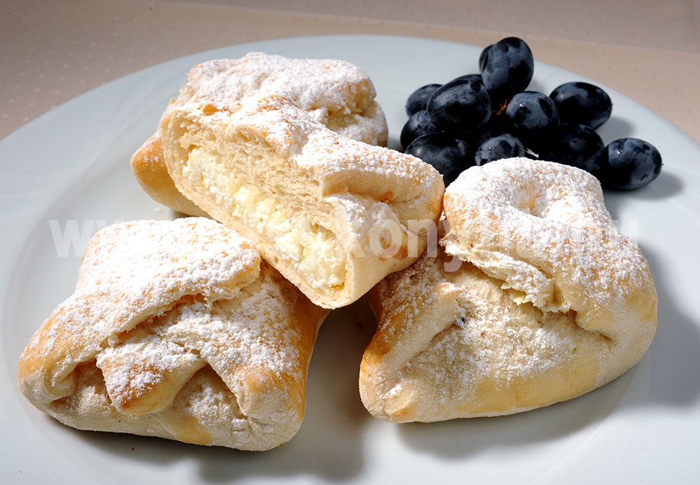 A tészta hozzávalóiból tésztát dagasztunk. Meleg helyen kb. egy órán keresztül kelesztjük. Közben a töltelékhez a túrót összetörjük, és a többi alapanyaggal gondosan összedolgozzuk. A megkelt tésztát lisztezett deszkán félujjnyi vastagra nyújtjuk, és kb. 8x8 cm-es négyzetekre vágjuk. Mindegyik négyzet közepébe túrótölteléket teszünk, majd a tészta négy sarkát a töltelék fölött összefogjuk, és kissé összenyomjuk. A batyukat kivajazott tepsibe tesszük, és kb. 30 percig tovább kelesztjük. Sütés előtt megkenjük felvert tojással, és 180°C-os előmelegített sütőben aranysárgára sütjük, végül hagyjuk kihűlni. Tálalásnál porcukorral meghintjük.
