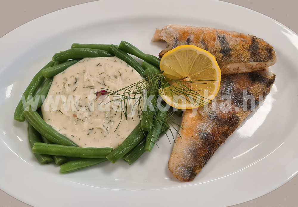Az olajat felhevítjük, a besózott filéket bőrös felületükkel lefelé kb. 3-4 percig sütjük majd hozzáadjuk a vajat és 5-6 percig alacsony lángon fedő alatt rövid idő alatt készre pároljuk. Közben a mártáshoz a vajat felforrósítjuk, megszórjuk liszttel, 1-2 percig hevítjük majd hozzáadjuk a finomra vágott kaprot, felöntjük tejjel, simára keverjük, tejföllel krémesítjük, sóval, borssal, cukorral és citromlével ízesítjük majd kb. 5 perc alatt készre főzzük. A zöldbabot, enyhén sós vízben megfőzzük, lecsepegtetjük. A kész halszeleteket tányérra helyezzük, köretként kapormártást és zöldbabot kínálunk mellé citromkarikával és friss kaporral díszítve.