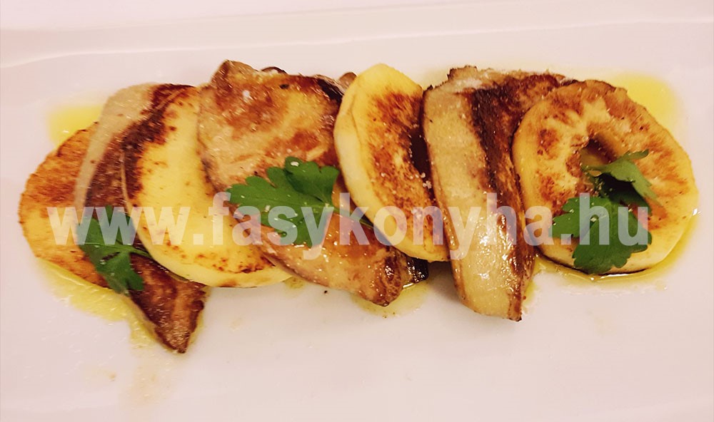 A libamájat tokaji aszúval felöntjük és egy napig hűtőben tároljuk. Felszeleteljük, lisztben enyhén megforgatjuk, teflonserpenyőbe rakjuk és lassú tűzön rövid idő alatt mindkét oldalát megsütjük a tisztított, felkarikázott almával együtt. Sütés után a zsiradékot leöntjük róla, majd hagyjuk kihűlni, sóval borssal meghintjük és esztétikusan tálaljuk.