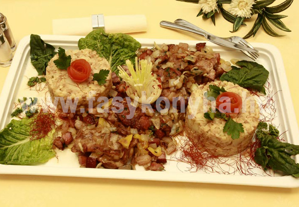 A leszűrt szalonnazsíron a házi tarhonyát szép barnára pirítjuk, majd hozzáadjuk a karikákra vágott, tisztított burgonyát. Felöntjük vízzel, sóval beízesítjük és állandó kevergetés mellett addig főzzük, míg a benne valók megpuhulnak. Menet közben a folyadékot pótoljuk. Köretként tálaljuk a parasztos pecsenyehúshoz. Hordós káposztát ajánlok hozzá savanyúságként.