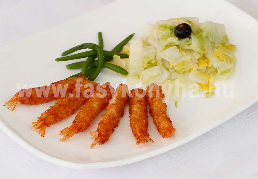 Elkészítési mód:A lisztet, a tojást, a szódabikarbónát a jeges vízzel palacsintatészta állagúra keverjük és sóval, borssal ízesítjük. A rákról a nedvességet papírtörlővel felitatjuk, egyenként belemártjuk a masszába, majd bő, forró olajban 1-2 perc alatt aranybarnára sütjük. Közben vajban megpároljuk a kínai kelt, sóval ízesítjük és ceruzababbal esztétikusan kínáljuk a rák tempura mellé.