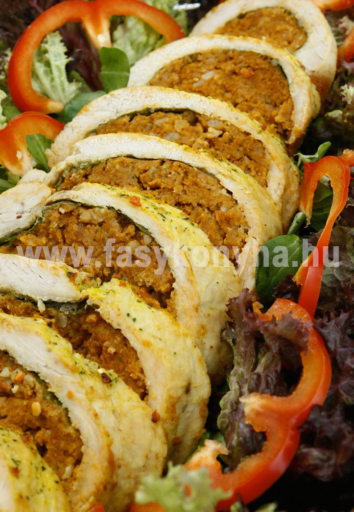Töltött pulykatekercs Ádi módra, friss salátával (500kcal/ fő)