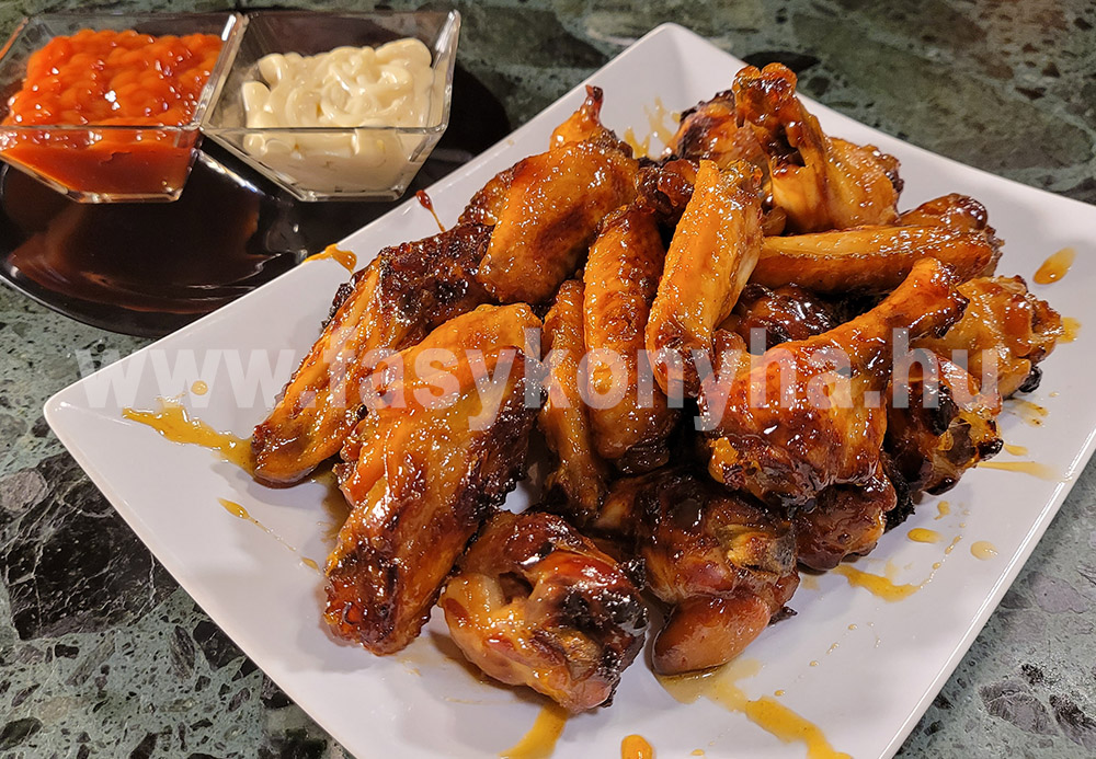A csirkeszárnyról a végeket levágjuk és átmossuk. A hozzávalókat a méz kivételével egy lábasba rakjuk, felöntjük annyi vízzel, hogy ellepje, sóval, borssal ízesítjük, egy forralás után lassú tűzön 30 percig abáljuk. Az abált csirkeszárnyakat mézbe megforgatjuk, tepsibe rakjuk, és 180 °C -os előmelegített sütőben aranybarnára karamellizáljuk.