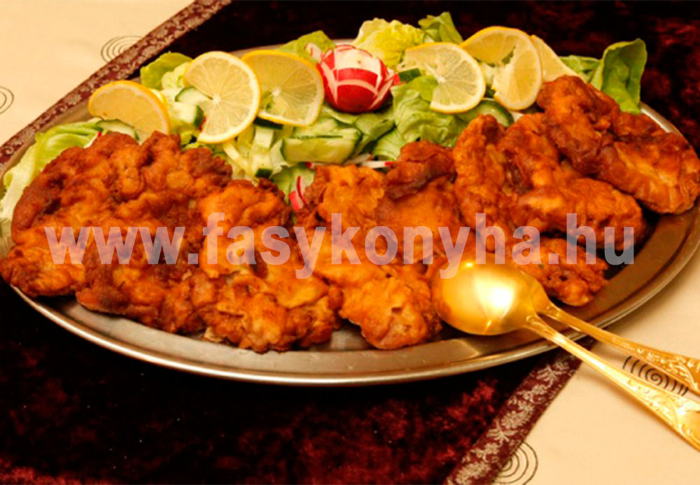A sertés szűzpecsenyét 8 szeletre vágjuk, majd besózzuk. Húskalapáccsal folpack-on keresztül kiklopfoljuk. (Megj.: Azért tesszük rá a húsra, hogy ne fröcsköljön szét.) A lisztet a tojássárgájával, a darált mandulával valamint a sörrel simára keverjük, sóval, borssal ízesítjük. A tojásfehérjét kemény habbá verjük és óvatosan állandó kevergetés mellett, hozzáadjuk a mandulás tésztához. Ebbe mártogatjuk a hús szeleteket és forró olajban aranysárgára sütjük.