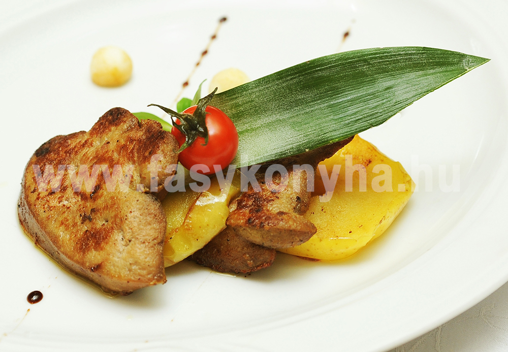 A libamájat felszeleteljük. A szeleteket lisztben megforgatjuk, lassú tűzön olajban mindkét oldalát megsütjük, s díszítve tálaljuk a mézben karamellizált alma szeletek mellé.