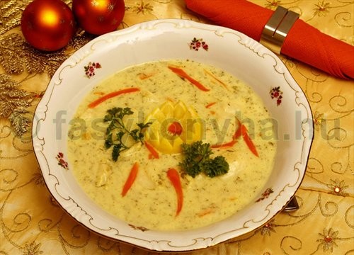 A harcsafilét besózzuk és egy 1 óráig a hűtőbe rakjuk. A megtisztított hagymákat, a zöldségeket, a jól átmosott halaprólékot és a finomra vágott kaprot egy fazékba rakjuk. 1,5 liter vízzel felöntjük és sóval, borssal ízesítjük. 1 órán át főzzük, majd leszűrjük, a zöldségeket metéltre vágjuk, azután az 5 dkg-os szeletekre vágott harcsafilével együtt belerakjuk a hallevesbe. Visszatesszük a tűzre és 10 percig forraljuk. A lisztet a tejföllel, a citromlével simára keverjük, és a levest behabarjuk. Citrommal és petrezselyem zöldjével díszítve tálaljuk.